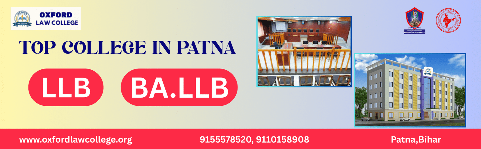 Oxford Law College is affiliated to Patliputra University, Patna, and recognized by the Bar Council of India. The college is approved by the Government of Bihar to offer the 3-Year LL.B. and 5-Year B.A. LL.B. programs.